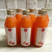 りんご6、人参4の割合で、人参嫌いなお子様にもより飲みやすくなりました。ビンの底に沈殿物がございますが、100%ならではの果肉成分(水溶性食物繊維)ですので、開栓前によく振ってからお召し上がりくださいませ。お子様からご年配の方にも安心してお飲みいただけますので、季節のごあいさつ、お祝い、お土産にご利用くださいませ。
